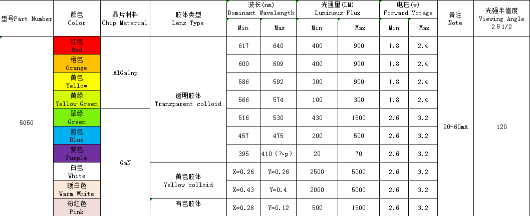 5050(單、雙、全彩、ICRGB、發射接收)全系列