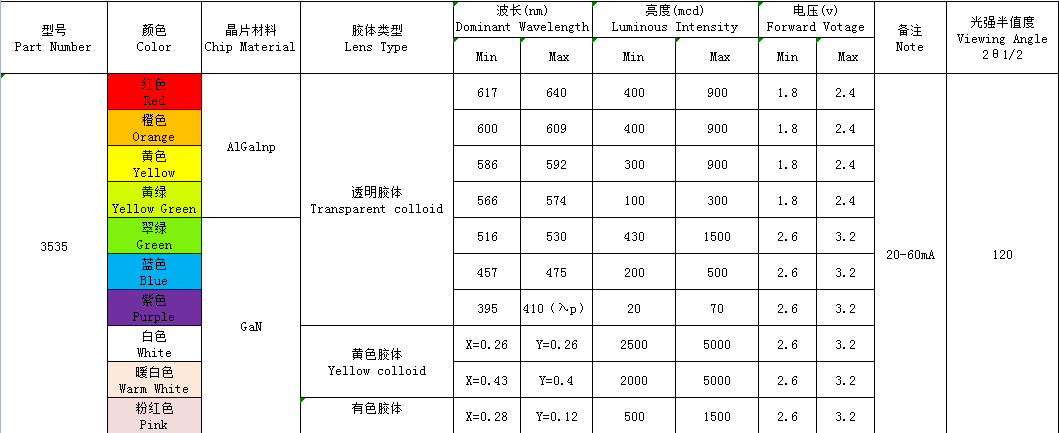3535(單、雙、全彩、ICRGB、紫外、發射接收)全系列