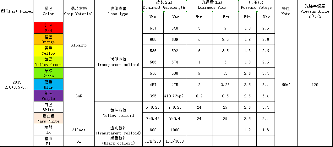 2835(單色、發射接收)系列