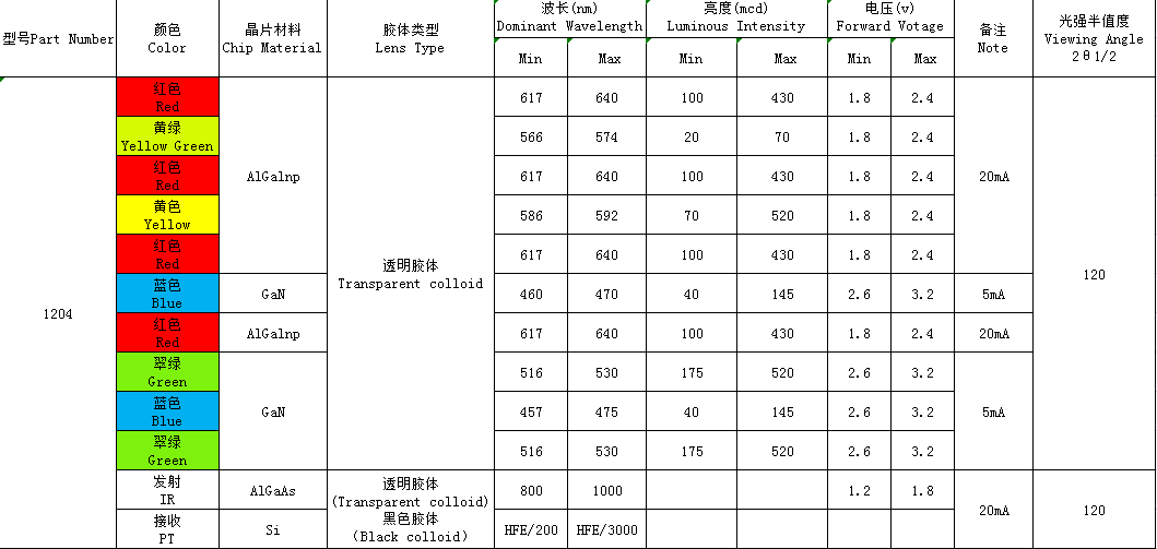 1204(單、雙、全彩、ICRGB、發射接收)全系列