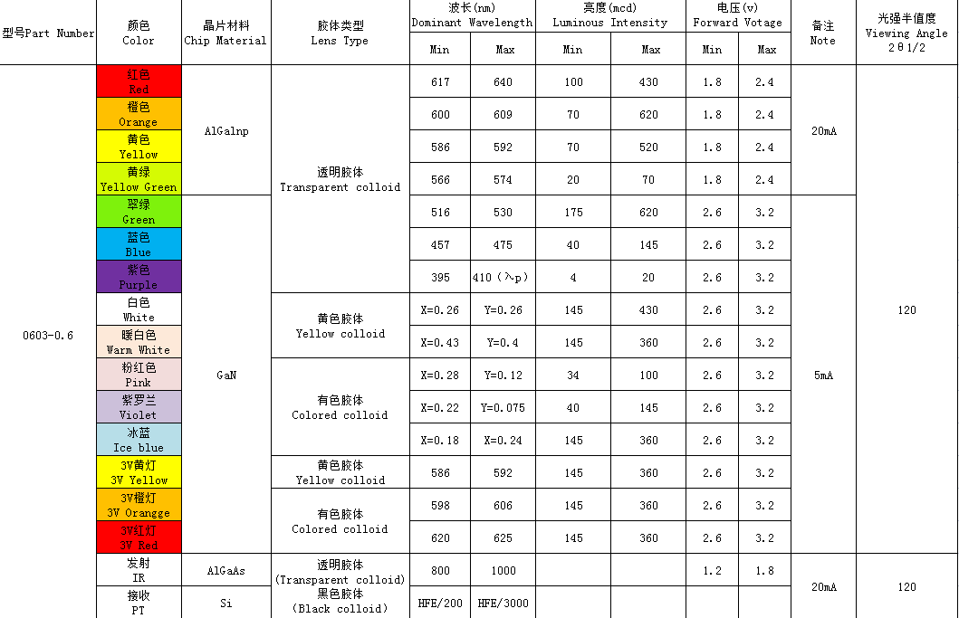 0603-0.6單、雙、ICRGB全(quan)系列、(1608)全(quan)彩